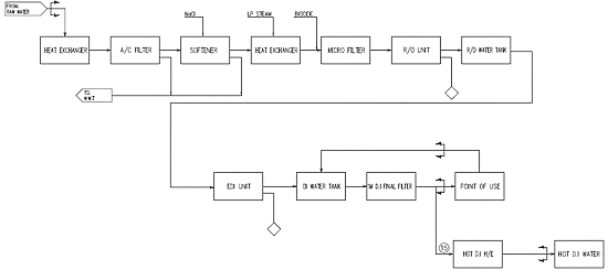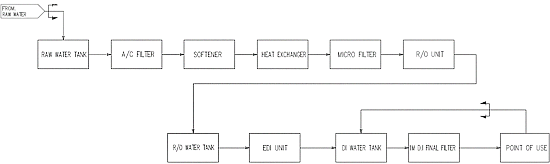 또, 초순수의 사용량이 많기 때문에 생산비용을 낮추기 위해 R/O SYSTEM이 전처리 공정에 사용되고 후처리 공정으로는 EDI, MBP, U/F가 사용된다.